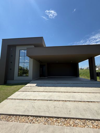 - 279,00 M² - Condomínio tranquilo e completo. - 3 dormitórios (sendo 1 suite com closet e 2 demi suites) - Area de serviço - Banheiro social - Living integrando cozinha e sala - Varanda frontal - Garagem com vaga para 2 carros cobertos e 2 carros descobertos na rampa - Corredor com espaço para home office e rouparia - Área gourmet com churrasqueira a carvão - Piscina com equipamentos instalados - Aquecedor a gás instalado - Esquadrias em pvc branco - Porta frontal em alumínio amadeirado