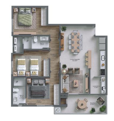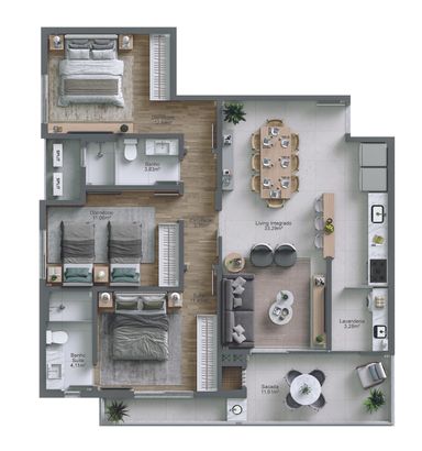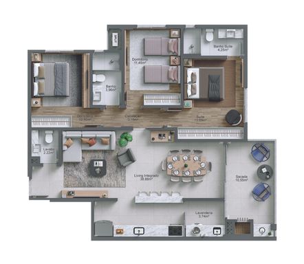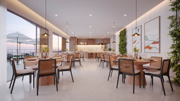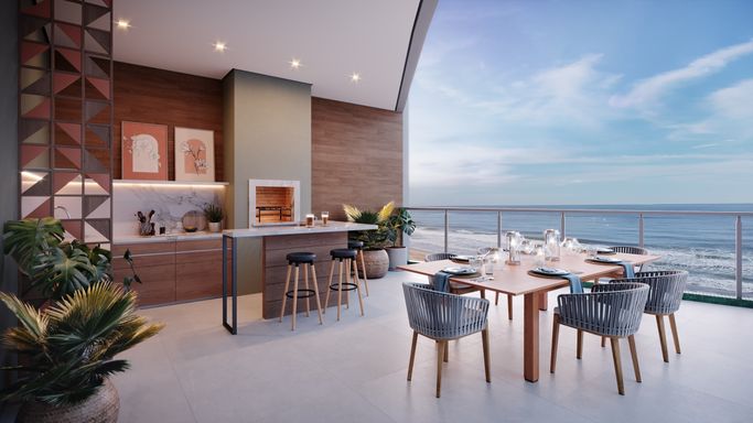 • Sacada com churrasqueira a carvão e vista mar • 2 vagas de garagem + depósito